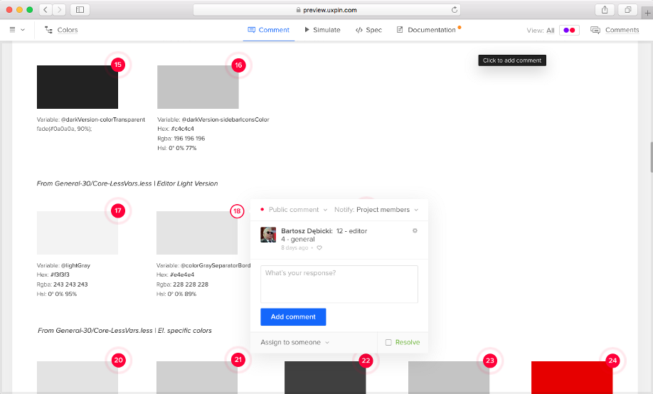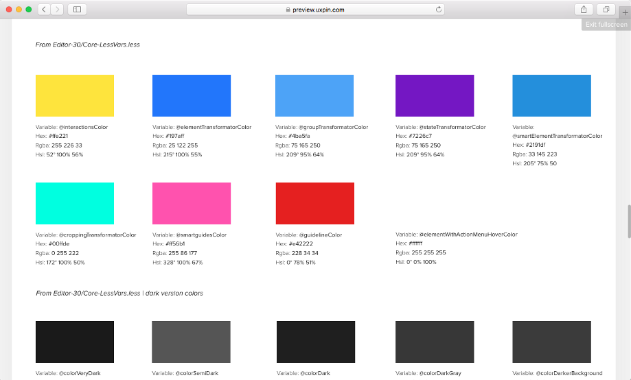 A typical source of design inconsistency is the set of colors used across the product portfolio. For example, the inventorization of colors at UXPin showed a massive redundancy slowing down the development process. 116 colors variables with 62 shades of gray were used at UXPin before the emergence of our design system.